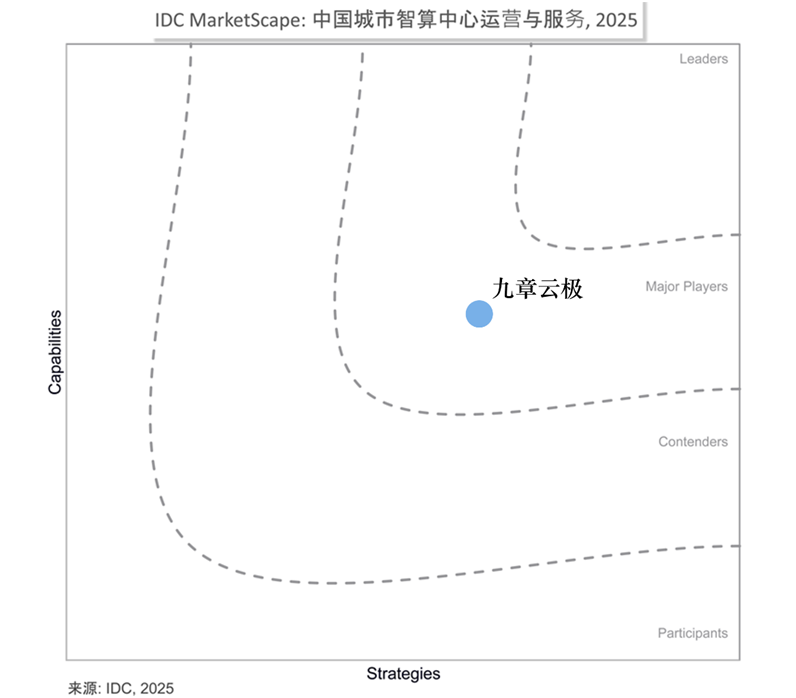 近日,国际权威IT咨询机构IDC发布了《IDC MarketScape: 中国城市智算中心运营与服务2025年厂商评估》(Doc#CHC53015225,2025年8月)。九章云极凭借卓越的技术实力与战略布局,在能力和战略双维度评估中脱颖而出,获评"主要玩家"称号。这一殊荣不仅彰显了九章云极在智算中心运营服务领域的领先地位,更印证了其技术创新能力与普惠智算生态建设成果已获得国际专业机构认可。
