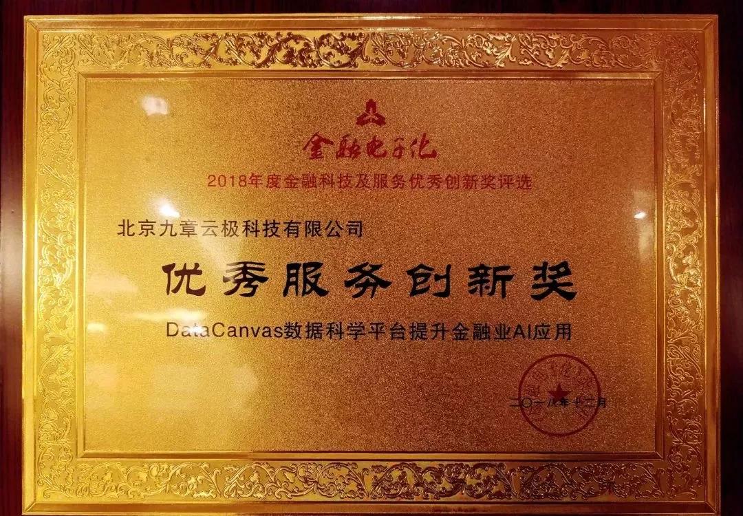 本次盛会表彰了2018年在金融科技和业务发展方面做出突出贡献的金融机构和科技企业,九章云极DataCanvas凭借功能强大、灵活的DataCanvas数据科学平台和切实在场景中落地的优秀解决方案,荣获“2018年度金融科技及服务优秀创新奖”。据主办方介绍,该奖“表彰为金融机构提供多样化服务,协助金融机构更好地实现普惠金融的金融科技企业”。